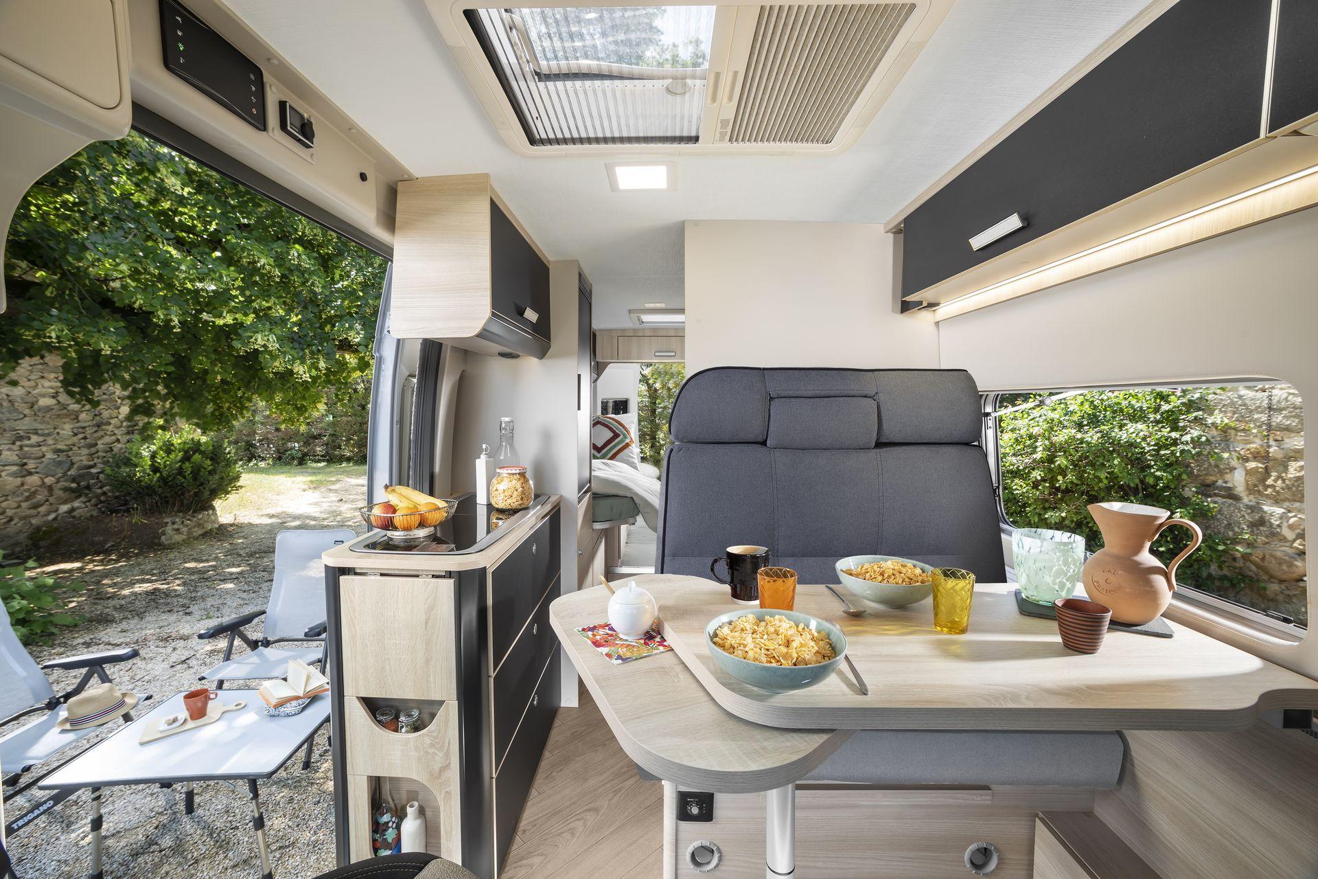 Chausson gebruikt elk vierkante meter slim zodat zowel wonen, slapen als reizen comfortabel kan, zonder onnodige verspilling van ruimte.