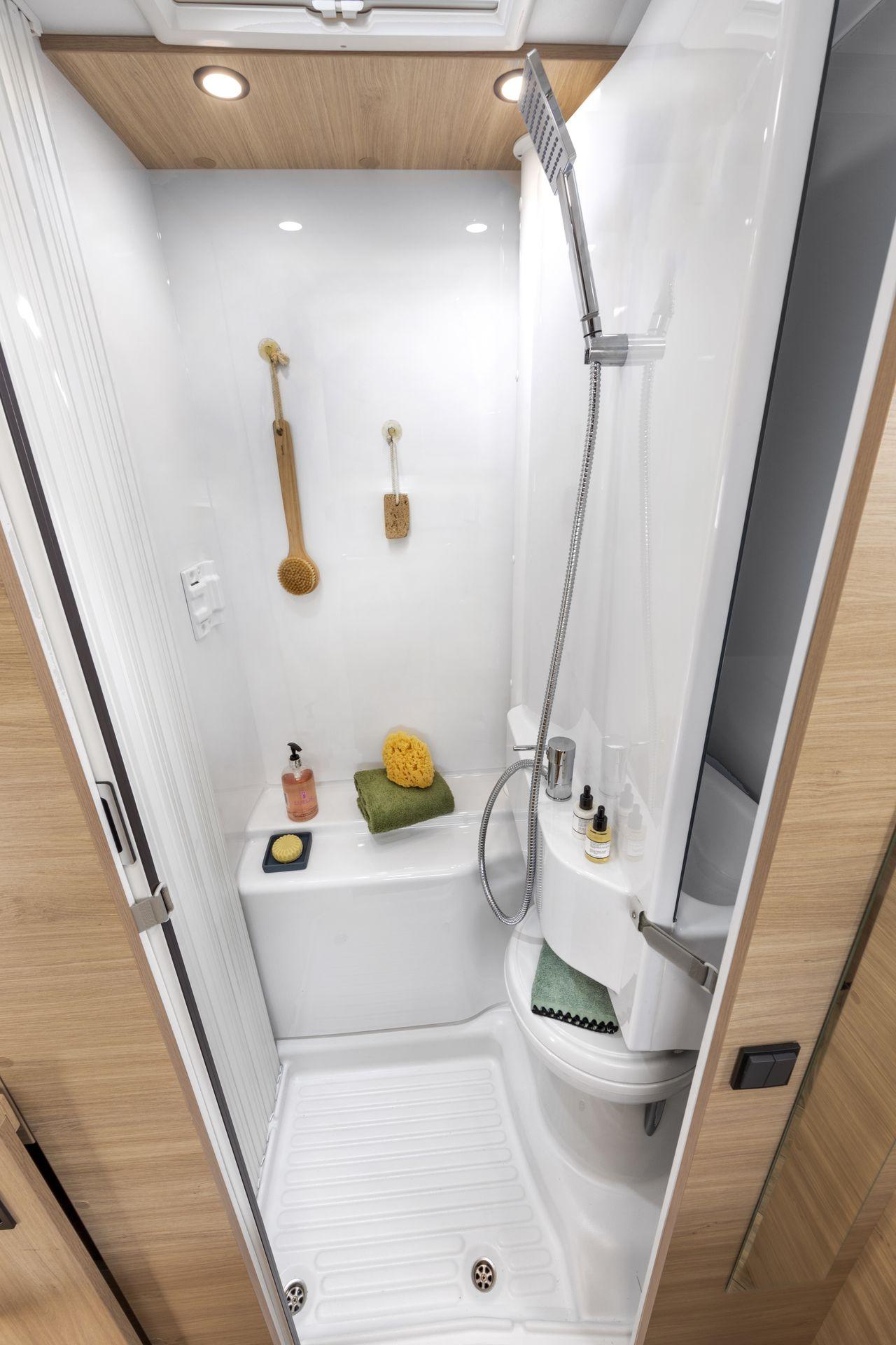 Aan de andere kant herbergt de S697 Sportline (6,59 m lang en 2,10 m breed) een ruime indeling met enkele lengtemaatbedden, automatische versnellingsbak en een sportief exterieur met matte grijze afwerking en zwarte 16″ velgen . Een motorhome die opvalt door stijl én heldere functionaliteit.