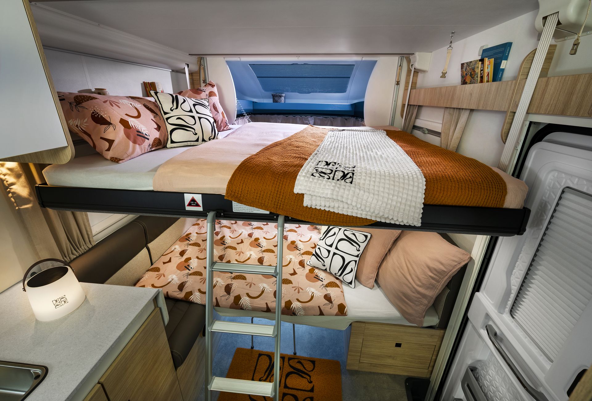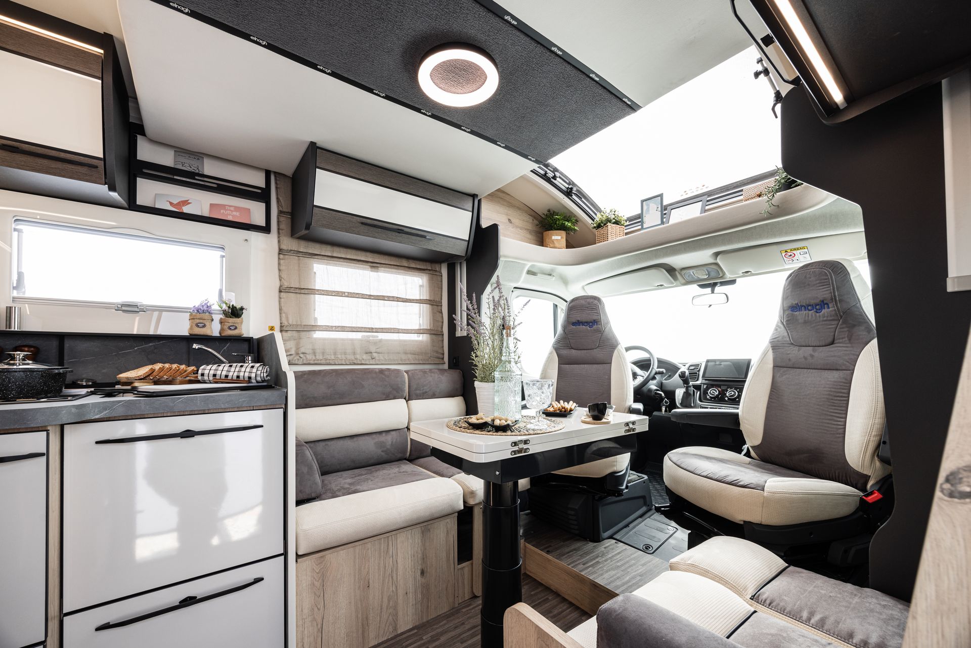 De Elnagh T-Loft 532 staat voor elegant reizen met een uitgesproken gevoel van ruimte. De face-to-face zithoek creëert een open leefomgeving waarin samen genieten centraal staat, terwijl de twinbed-opstelling achterin rust en comfort biedt na een dag onderweg.