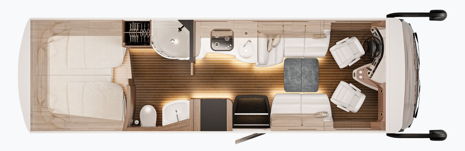 Het lichte, stijlvolle interieur en de doordachte indeling bieden gemak en luxe, zonder dat je onderweg hoeft in te leveren op functionaliteit. Ideaal voor wie reist met flair, comfort en een gevoel van exclusiviteit.