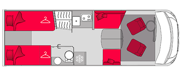 De Pilote G781 FGJ Expression combineert royale ruimte met verfijnde afwerking, waardoor elke rit aanvoelt als een comfortabele ontsnapping. De face-to-face zithoek nodigt uit tot ontspanning, terwijl de achterste twinbedden of een royaal queensize-bed zorgen voor ultieme rust.