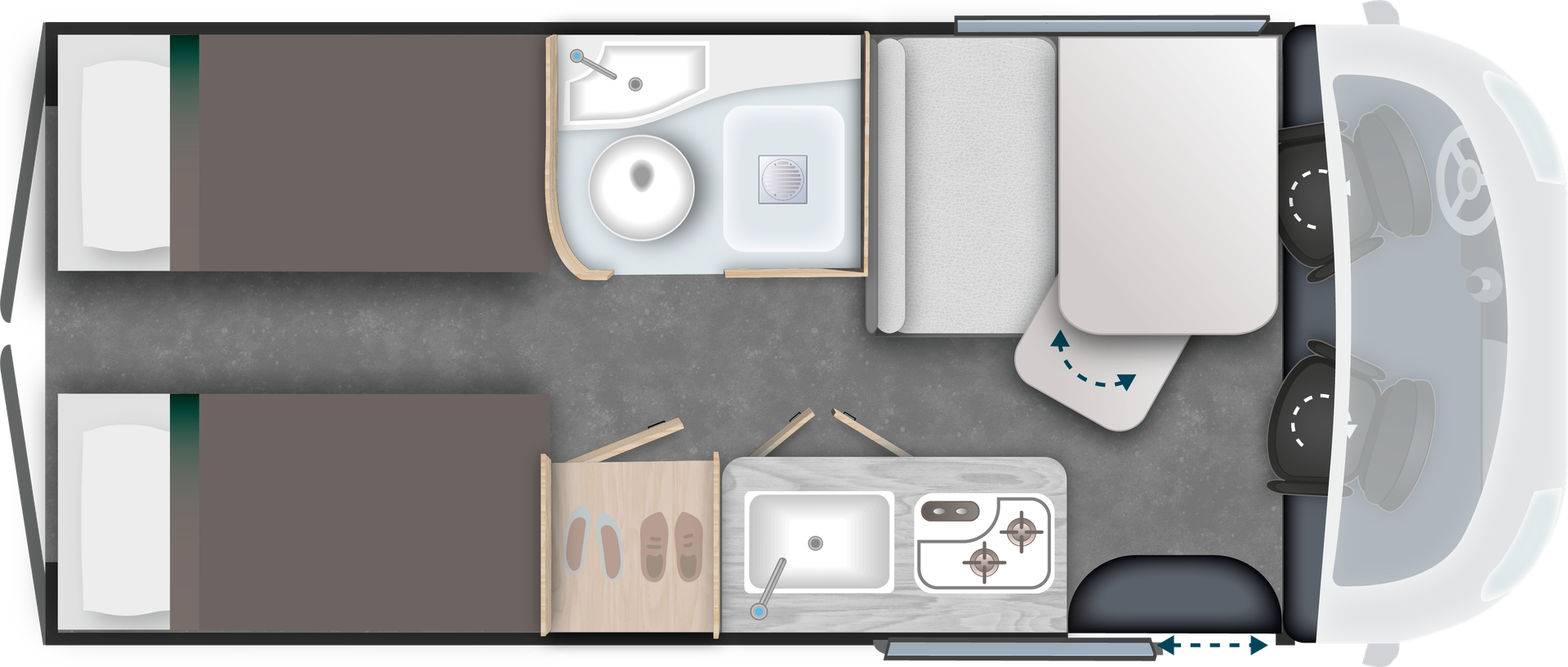 De Chausson V697 Sportline laat zien hoe slim ontwerp en stijlvolle vrijheid samenkomen in één buscamper. Met een doordachte indeling die een open leefruimte en comfortabele twin‑bedden biedt binnen een handzaam totaalpakket, ervaar je onderweg gemak én rust – perfect voor koppels die volop willen genieten van hun reis zonder gedoe. De V697 combineert praktische indeling met fijne details zoals een slimme keuken en een gezellige zithoek, terwijl hij dankzij zijn lengte van circa 6,36 m wendbaar blijft op smalle wegen en in drukke stegen. Een camper die comfort, stijl en soepele mobiliteit moeiteloos verenigt.